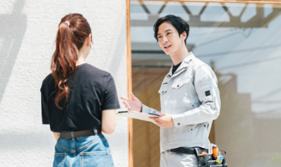 お客様の家に、すぐに弊社スタッフが駆け付けます。状況を確認後、お見積りをさせていただきます。